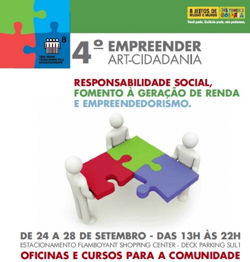 Adrianne VitoreliO Senac participa, de 24 a 28 de setembro, da 4ª Edição do Projeto Empreender Art-Cidadania, realizado pelo Instituto Flamboyant, que acontece no estacionamento do Flamboyant Shopping Center, Deck Parking Sul 1. Baseado no 8º Objetivo do Milênio “Todo Mundo Trabalhando pelo Desenvolvimento”, o evento terá como foco a promoção do desenvolvimento sócio-econômico da comunidade.