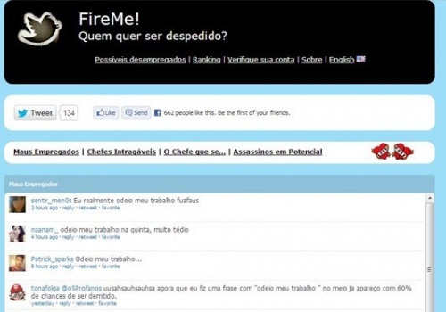 Além de rastrear em tempo real, o FireMe! ainda traz o ranking das pessoas que têm as maiores chances de serem demitidas, pela intensidade dos seus tweets negativos