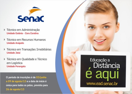 Senac Cora Coralina abre inscrições para curso Técnico a distância
