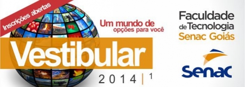Adrianne VitoreliHoje, dia 05 de dezembro, é o último dia para você fazer a sua inscrição para o Vestibular 2014/1 da Faculdade de Tecnologia Senac Goiás. Além dos novos cursos (Jogos Digitais e Produção Multimídia), a faculdade oferece vagas para os cursos: Design Gráfico, Gestão Ambiental, Gestão Comercial, Gestão da Tecnologia da Informação e Segurança da Informação. As inscrições devem ser feitas exclusivamente pela Internet e a prova acontece no dia 08 de dezembro. Informações completas sobre os cursos, inscrições e as provas do Vestibular no site http://www.go.senac.br