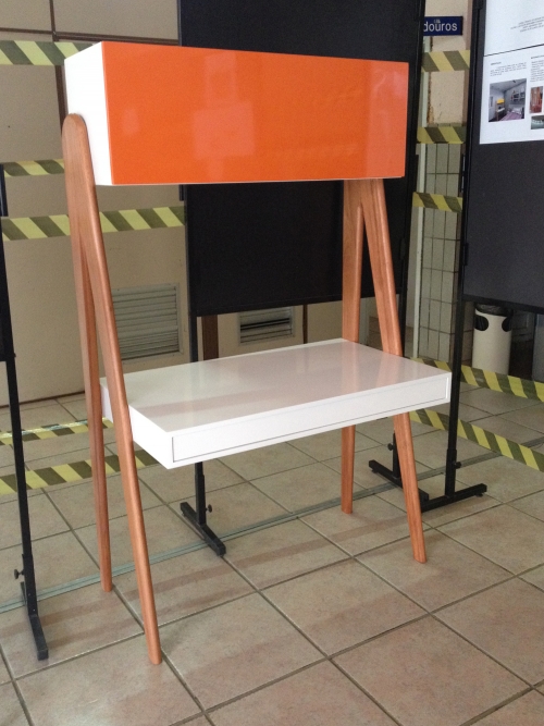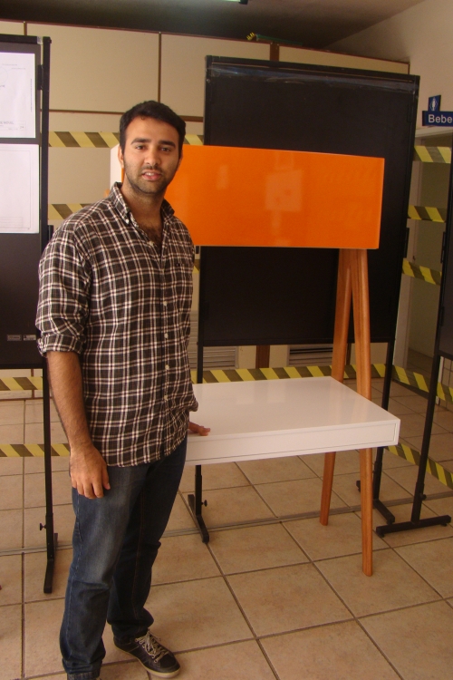 Expostos no Hall da unidade entre os dias 5 e 12 de junho, estão os projetos finais dos 14 alunos da turma de Técnico em Design de Interiores, dentre eles está o móvel “Deise”, projetado por Luiz. O aluno descreve que o móvel foi criado com acabamento nobre e que possibilita ao usuário personalizá-lo a seu gosto. “Desenvolvi uma escrivaninha e busquei a estrutura do compasso, instrumento muito utilizado por designers e arquitetos”. O aluno conta que o nome do projeto homenageia uma amiga que perdeu recentemente e traz um significado como aquela que gosta de ser necessária e útil.
