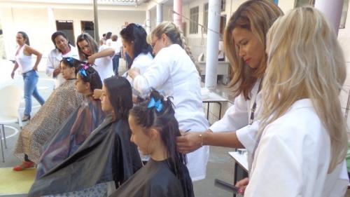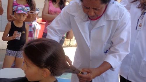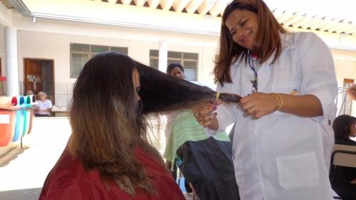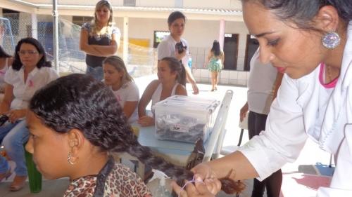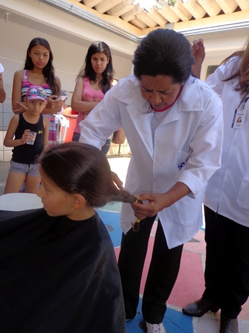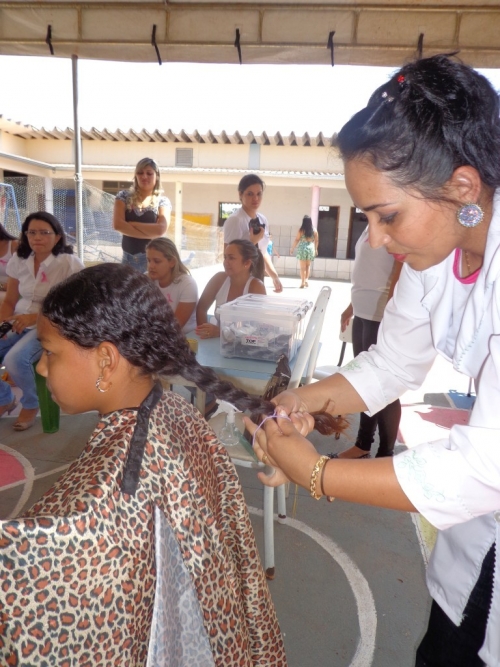 Atenderam ao convite a comunidade local, entre crianças e adultos. Gabriela Azeredo Santos, secretária municipal de Educação, prestou solidariedade à iniciativa doando duas mechas de cabelos. Gislaine, Graciele e Maria Eduarda, acompanhadas pelas mamães, também foram solidárias. A equipe do Senac, coordenada pela instrutora Ronnilda Rodrigues, muito atenta a prestar um serviço de qualidade, fez os cortes a partir dos 15cm estipulados pelo Cebrom para a confecção das perucas, dando em seguida o retoque estético ao corte, que recebeu escovação de acordo com o gosto das doadoras.
