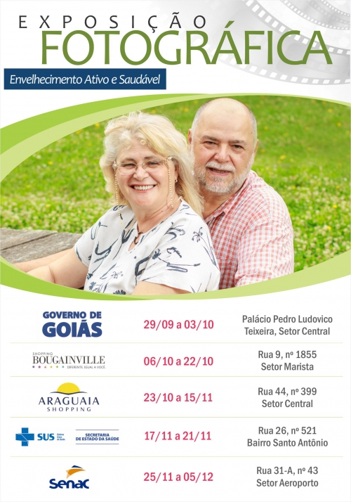 São 30 imagens que serão expostas inicialmente no Palácio Pedro Ludovico Teixeira, entre os dias 29 de setembro e 03 de outubro. Em seguida, no Shopping Bougainville, de 06 a 22 de outubro; Araguaia Shopping entre os dias 23 de outubro e 15 de novembro; Sistema Único de Saúde (SUS) e Secretaria de Estado da Saúde, de 17 a 21 de novembro, e tem como destino final o hall do Senac Elias Bufáiçal, entre os dias 25 de novembro e 05 de dezembro. As exposições têm como objetivo destacar este público que cresce a cada ano e transforma as diretrizes sociais.