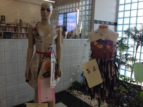 Os alunos do 3º módulo do curso Técnico em Moda (noturno), sob a orientação da instrutora Telma Guedes, exploraram a criatividade que resultou em uma exposição de moda com tema O luxo do lixo.