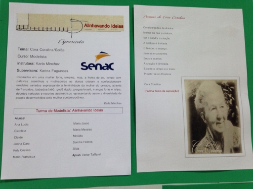 A exposição é uma parceria do Goiás Criativo e Senac. A iniciativa busca valorizar a cultura goiana bem como incentivar o empreendedorismo cultural. Toda a coleção da mostra remete aos versos de Cora Coralina, mulher forte, simples e à frente do seu tempo. As roupas expressam a feminilidade da mulher do cerrado, por meio de franzidos, babados, pregas, mangas fofas e tulipa, decotes variados e recortes assimétricos, representando assim a diversidade de papéis desenvolvidos pela mulher contemporânea.
